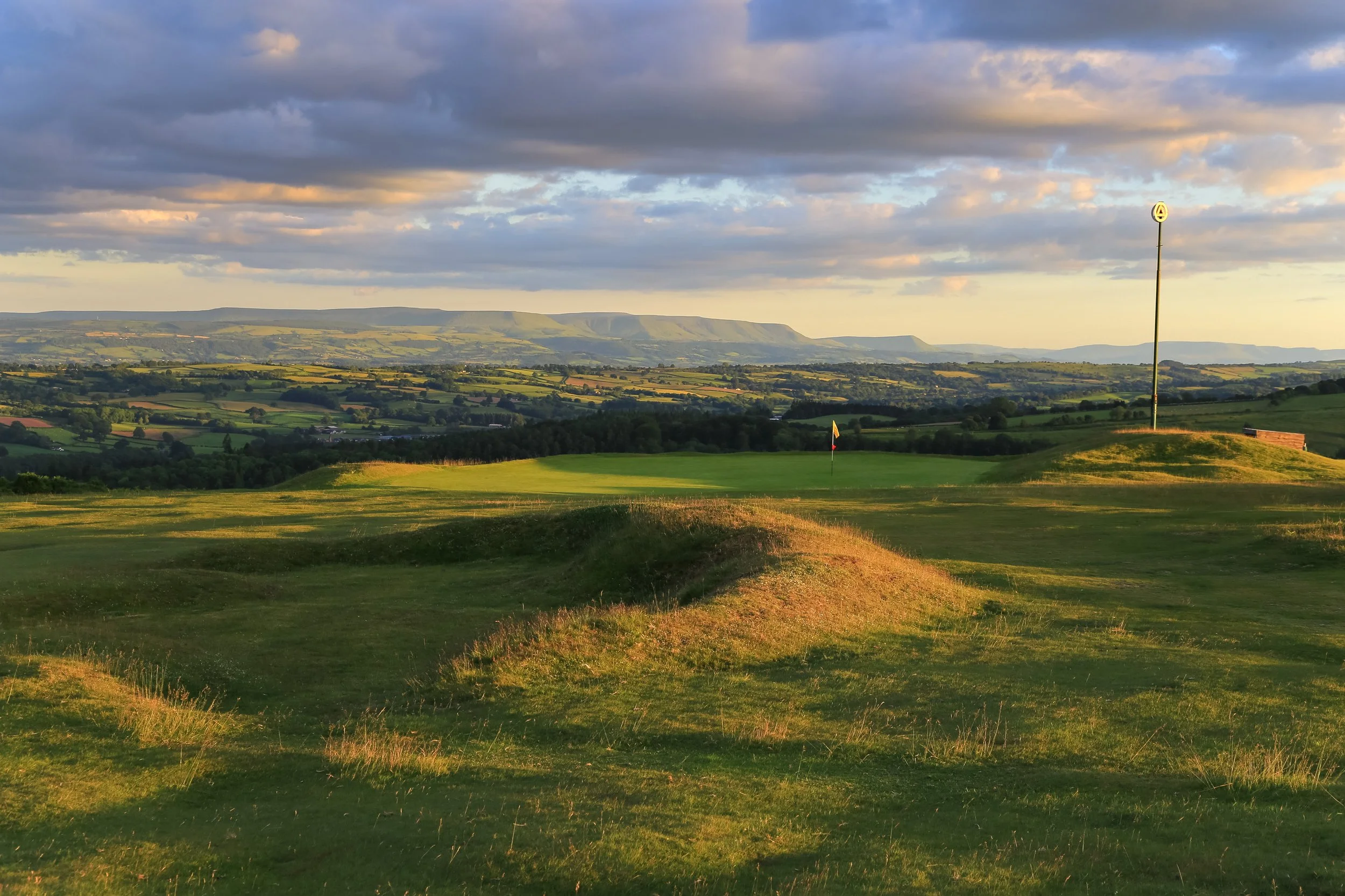 At an elevation of 1,100 feet, the Kington Golf Course on Bradnor Hill is the highest golf course in England. The land is owned by the National Trust, with the Offa’s Dyke footpath passing through. Kington’s greens are noted for their high quality, with many still available for play into the winter months. Known for their warm welcome to individuals and groups of new golfers, Kington is open to both visitors and members. The course boasts unsurpassed, spectacular 360 degree views over 7 counties.